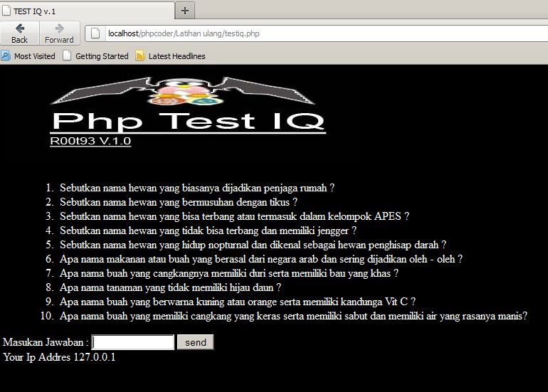 Berikut adalah program sederhana yang saya beri nama PHP TEST IQ