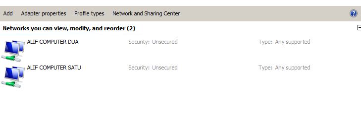 • Pilih Network and Internet -> pilih network and sharing center -> manage wireless networks