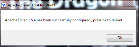 8. Proses terkhir Apache2Triad akan meminta Anda untuk merestart komputer.