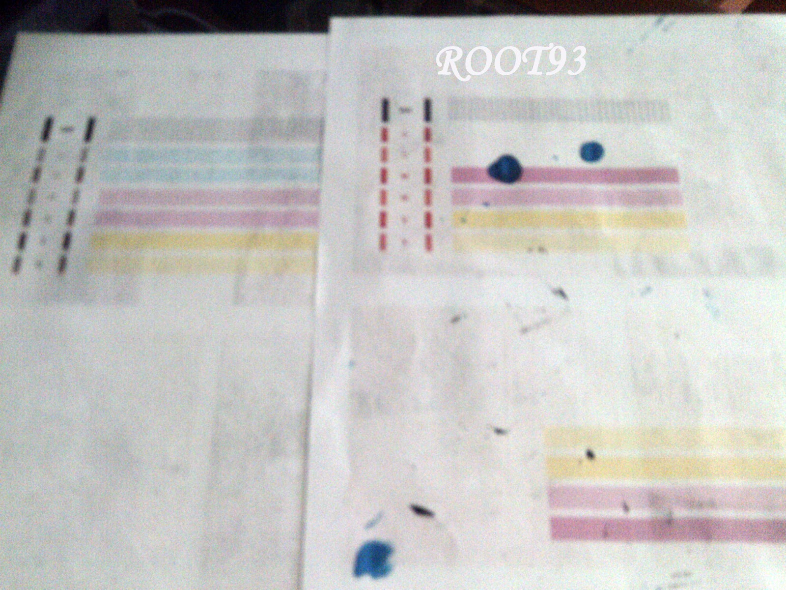 Sebelah kanan merupakan gamba hasil cetak sebelum printer diperbaiki, terlihat bahwa disana ada waran yang tidak keluar.Sedangkan sebelah kiri adalah hasil cetak setelah printer di perbaiki, dan semua warna dicetak kedalam kertas.